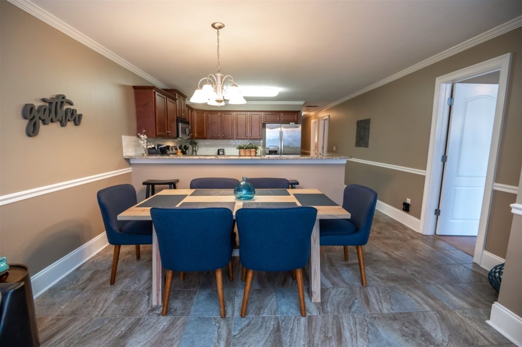 This great ground floor condo right off 280 in Alex City is conveniently located just across from River North Marina. The condo sleeps 8 guests and has its own dedicated boat slip for use during your stay. The full kitchen with coffee maker, Keurig, ice maker & breakfast bar opens to the dining area and living area with a sliding glass door to the patio. The primary bedroom has a queen bed, sliding glass door to the patio, and its own bathroom. The first bedroom upon entering the condo features a queen size bed. Double size bunk beds are in the guest room down the hall with the capacity to sleep 4. These 2 rooms share a full hallway bathroom with a large countertop and shower/tub combo. There is a full size washer and dryer in the unit. No pets or smoking allowed!