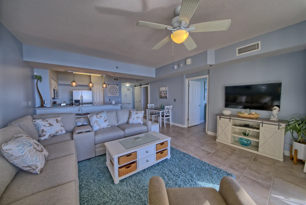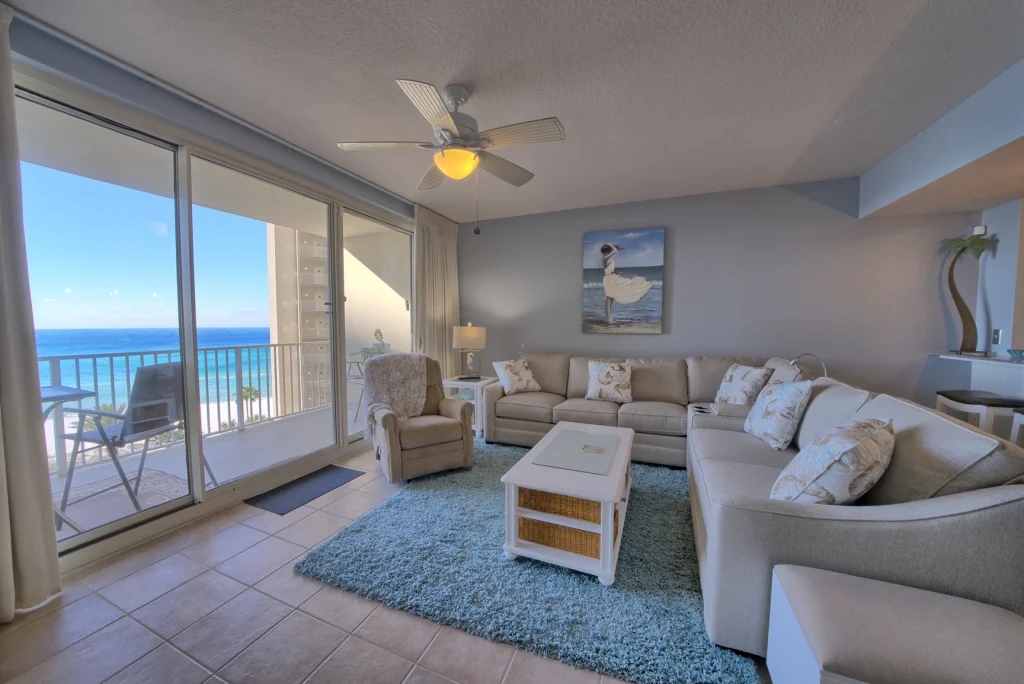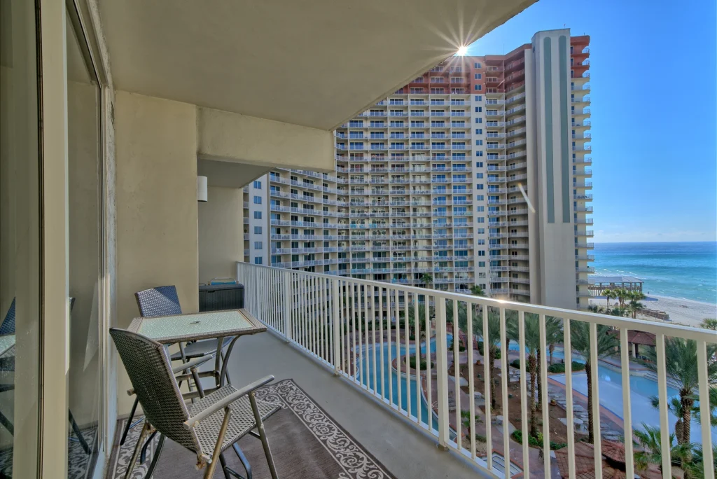 Condo 711 is located on the 7th floor at Shores of Panama with same floor designated parking. Completely updated 2 Bedroom, 2 Bath at Shores of Panama. King Master Bedroom overlooks the Gulf of Mexico. Double balcony in the center of building on 7th floor & overlooking our beautiful lagoon pool & the gulf as far as you can see. 2nd bedroom sleeps 3 with a full bunk/single on top, private barn door & its own full bath. Our huge sectional sofa pulls out to a queen sleeper! The kitchen features granite countertops and lots of storage space. It has a nicely stocked kitchen, including a Keurig/coffee pot, crock pot, and much more for any cooking you may want to do while you are here.